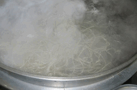 B沸騰した鍋に、1食分ずつ麺を入れます。優しく入れてください。